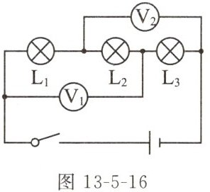 7. (2024宿迁宿城区校级一模)如图13-5-16所示的电路中,闭合开关,电压表$V_1$的示数是6V,电压表$V_2$的示数为8V,若$L_3$两端的电压是$L_1$两端电压的两倍,则电源电压是()