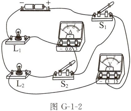 3. (2024 常州金坛区一模)如图 G-1-2 所示的电路中,闭合开关$S_{1}$、$S_{2}$,小灯泡$L_{1}和L_{2}$均正常发光,电流表和电压表均有示数,下列关于该电路的说法中,正确的是 ()