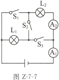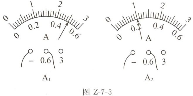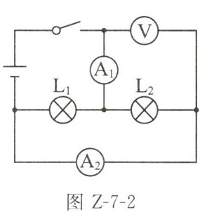 2. 如图 Z-7-2 所示的电路中,闭合开关后,电流表 $ A_{1} $、$ A_{2} $ 的示数分别如图 Z-7-3 所示,则下列说法中正确的是 (