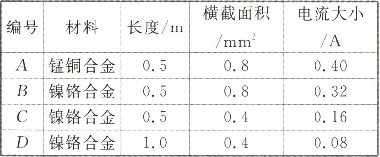 (3)分别将 C、D 两根合金丝接入电路,可初步探究出的结论是____。