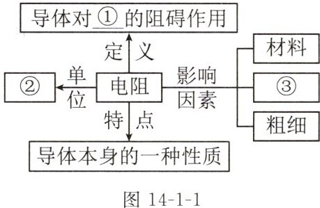 2. (2024 南通如东期中)如图 14-1-1 所示是小明学完电阻一节后描绘的思维导图,图中①②③处填写正确的是 ()