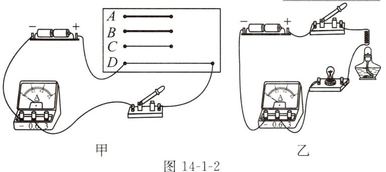 (1)如图 14-1-2 甲所示,实验中通过比较____来比较导体电阻的大小,此过程用到的研究方法是____。