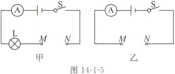 (1)小侨设计了如图 14-1-5 甲、乙所示两种电路,在 M、N 两点间分别接入不同的导体进行测量,你认为图____(选填“甲”或“乙”)电路更合理。