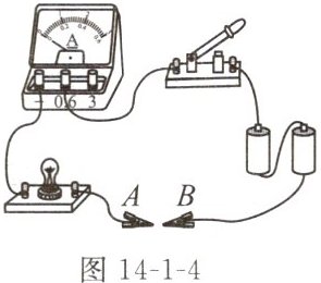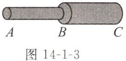 8. 如图 14-1-3 所示,AB、BC 是由同种材料制成的长度相同、横截面积不同的两段导体,将它们串联后连入电路中,比较这两段导体的电阻及通过它们的电流大小为 ()