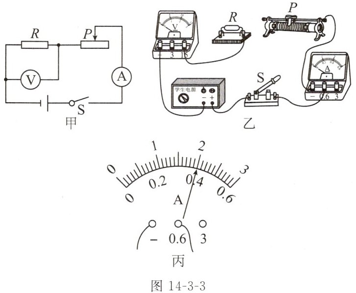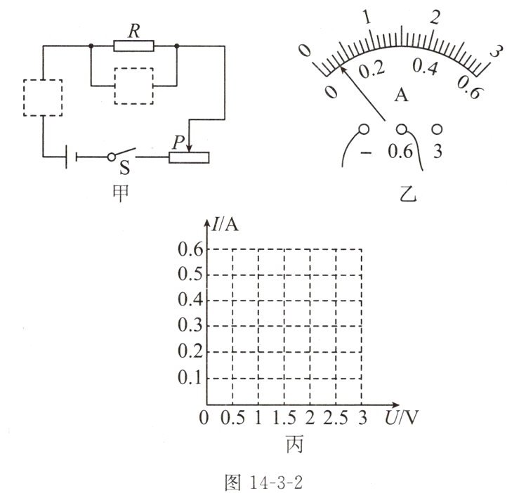 [设计实验]如图14-3-2甲所示是该实验的电路图,请在虚线框内填上适当的电表。