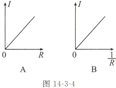 [交流合作]操作完成后,该小组的两名同学根据实验数据分别描绘出了I-R图像和I-$\frac{1}{R}$图像如图14-3-4所示,其中正确的是(