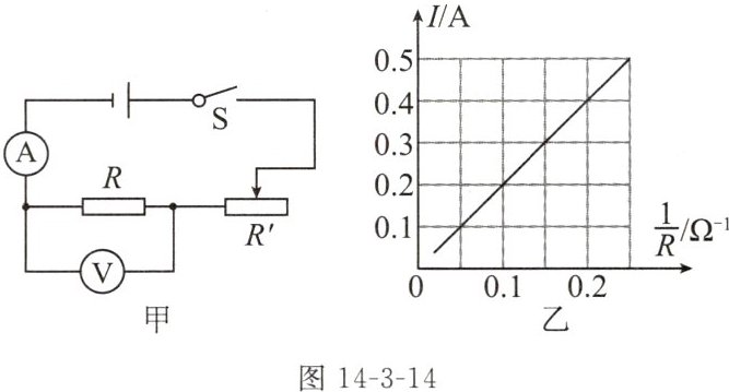 12. (2023苏州月考改编)小明利用图14-3-14甲所示的电路探究“通过导体的电流与电阻的关系”,根据实验数据绘出了图像,如图乙所示。分析图像可知:
