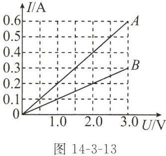 11. 如图14-3-13所示是电阻A、B的I-U图像。由图可知,电阻B的阻值是______Ω;将电阻A、B串联后接入电路,当通过电阻A的电流为0.3A时,电阻A、B两端的总电压是______V;将电阻A、B并联后接入某电路,当通过电阻B的电流为0.2A时,电阻A两端的电压是______V;将电阻A、B并联在电压为3V的电源两端,电路中的总电流是______A。