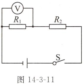9. (2023无锡期中)如图14-3-11所示,电源电压不变,$R_{2}$的电阻为20Ω。闭合开关后,电压表的示数为2V,电路中的电流为0.2A,则定值电阻$R_{1}$的阻值为______Ω。若只将电压表换成电流表,闭合开关,则电路中的电流为______A。