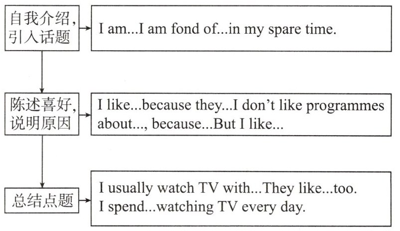 总结点题:I usually watch TV with...They like...too. I spend...watching TV every day.
