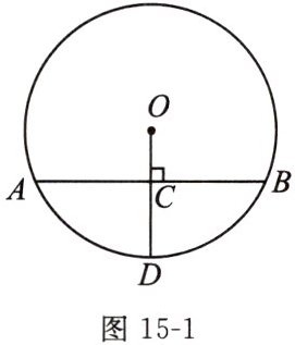 2. 如图 15 - 1,在$\odot O$中,半径$OD垂直于弦AB$,垂足为$C$,$OD = 13$,$AB = 24$,则$CD = $____.