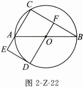 26. (12分)如图2-Z-22,AB是$\odot O$的直径,C是$\odot O$上的一点,连接BC,F为BC的中点,连接FO并延长交$\odot O$于点D,过点D的切线与CA的延长线交于点E.