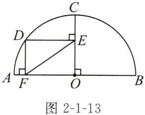 例4 如图2-1-13,半圆O的直径$AB= 8$,半径$OC⊥AB$,D为弧AC上一点,$DE⊥OC,DF⊥OA$,垂足分别为E,F,求EF的长.