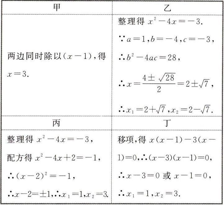 11. 关于x的方程$x(x-1)= 3(x-1)$,下列解法完全正确的是 (