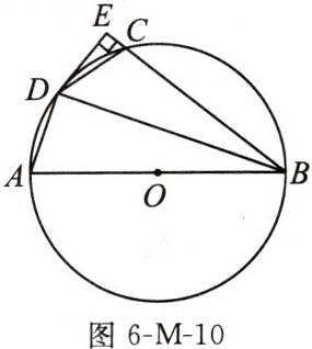 14. (14分)如图6-M-10,AB是$\odot O$的直径,四边形ABCD内接于$\odot O$,D是$\overset{\frown}{AC}$的中点,$DE\perp BC$交BC的延长线于点E,连接BD.