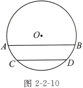 拓展 如图2-2-10,$AB$,$CD是\odot O$的两条弦,$AB// CD$,$\overset{\frown}{AC}与\overset{\frown}{BD}$相等吗?为什么?