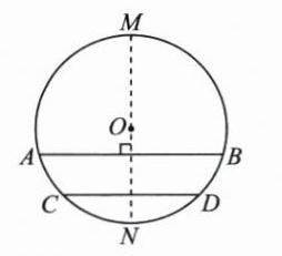 拓展 解:$\overset{\frown}{AC}=\overset{\frown}{BD}$。理由如下:如图,作垂直于弦$AB$的直径$MN$,则由$AB// CD$,可得$MN\perp CD$。