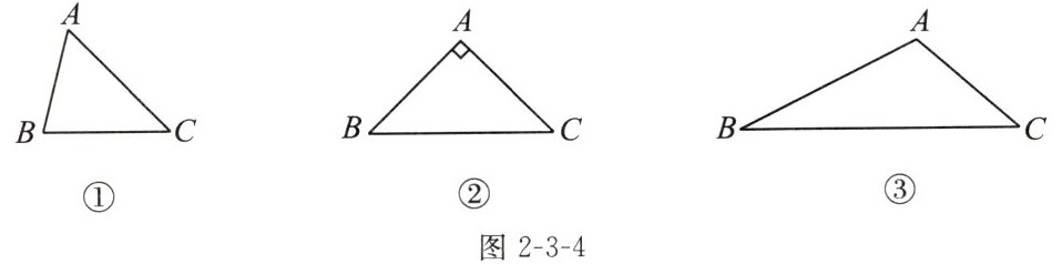 (1)如图2-3-4①,$\triangle ABC$是锐角三角形;