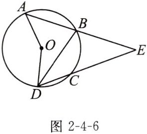 例2 (教材典题)如图2-4-6,$\odot O$的弦AB,DC的延长线相交于点E,$∠AOD= 150^{\circ },\overset{\frown }{BC}为70^{\circ }$.求$∠ABD,∠AED$的度数.