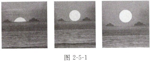 1. 观察三幅太阳升起的照片,地平线与太阳经历了哪些位置关系?通过这个自然现象,你猜想直线和圆的位置关系有哪几种?