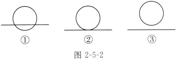2. 在纸上画一个圆,按图2-5-2①②③的顺序移动直尺.观察一下,直尺上边缘所在直线在移动的过程中与圆的位置关系发生了怎样的变化?