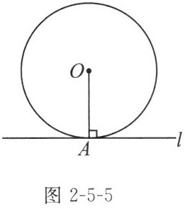 如图2-5-5,在$\odot O$中,经过半径OA的外端点A,作直线$l\perp OA$,直线l与$\odot O$有怎样的位置关系?
