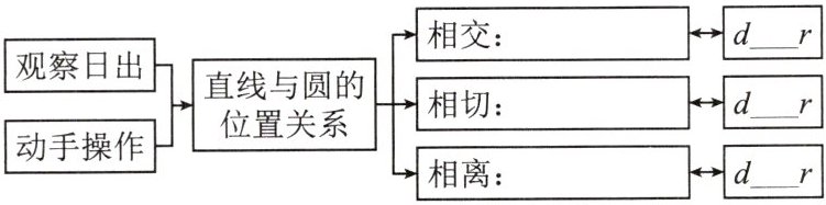 故答案依次为:直线与圆有两个公共点;$\lt$;直线与圆有一个公共点;$=$;直线与圆没有公共点;$\gt$。
