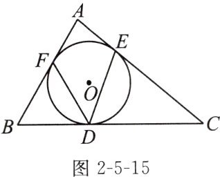 变式 如图2-5-15,⊙O是△ABC的内切圆,切点分别为D,E,F,若∠FDE= 50°,求∠A的度数.