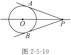 (2)如图2-5-19,PA,PB分别切$\odot O$于点A,B,沿直线OP将图形对折,发现线段$PA=$