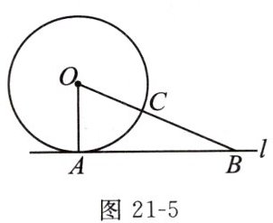 5. 如图 21 - 5,直线 l 是$\odot O$的切线,A 为切点,B 为直线 l 上一点,连接 OB 交$\odot O$于点 C.若$AB = 12cm,OA = 5cm$,则 BC 的长为