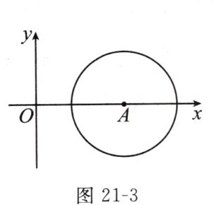 3. 如图 21 - 3 所示,在平面直角坐标系 xOy 中,$\odot A$的半径为 3,且点 A 的坐标为$(5,0)$,将$\odot A$沿 x 轴的负方向平移,使$\odot A$与 y 轴相切,则平移的距离为 (