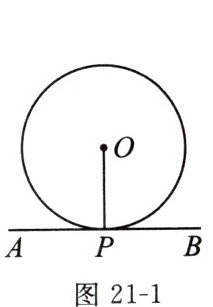 1. (2023 武汉期末)如图 21 - 1,已知$\odot O$的半径为 5,直线 AB 经过$\odot O$上一点 P,下列条件不能判定直线 AB 与$\odot O$相切的是 (