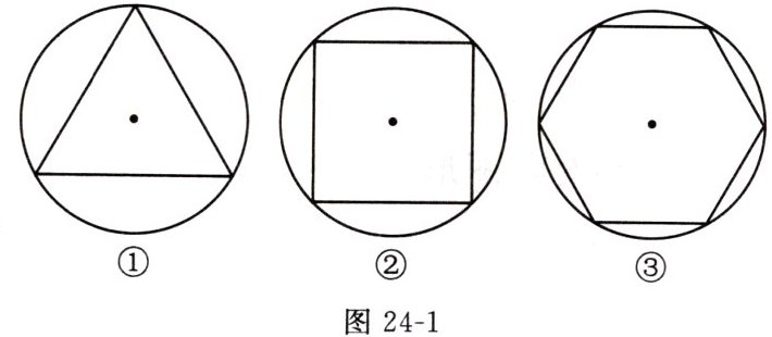 1. 如图24-1,正多边形内接于半径相等的圆,其中正多边形的周长最大的是图形 (