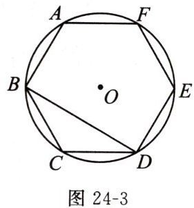 3. 如图24-3,正六边形ABCDEF内接于$\odot O$,连接BD,则$∠CBD$的度数是______