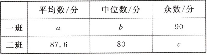 (3)(答案不唯一,合理即可)一班与二班的平均数相同,但是二班众数为100分,一班众数为90分,则二班成绩较好.
