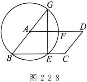12. 如图2-2-8,以$□ ABCD$的顶点A为圆心,AB为半径作$\odot A$,分别交BC,AD于点E,F,交BA的延长线于点G,连接EG.