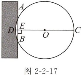 7. (2024扬州月考)《九章算术》是我国古代数学成就的杰出代表作,书中记载:“今有圆材埋壁中,不知大小.以锯锯之,深1寸,锯道长1尺,问径几何?”其意思为“如图2-2-17,今有一圆形木材($\odot O$)埋在墙中,不知其大小,用锯子去锯这根木材,锯口深$DE= 1$寸,锯道长$AB= 10$寸,问这根圆形木材的截面直径CD是多少?”请解答此问题.