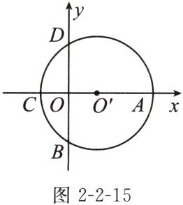 5. 如图2-2-15,在平面直角坐标系中,点$O'$在x轴上,$\odot O'$与两坐标轴分别交于A,C,B,D四点,已知$A(6,0)$,$C(-2,0)$,则点D的坐标为______
