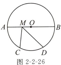 2. 如图 2 - 2 - 26,在⊙O 中,AB 为⊙O 的直径,AB = 12,C,D 是$\overset{\frown}{AB}$的三等分点,M 是 AB 上一动点,则 CM + DM 的最小值是______