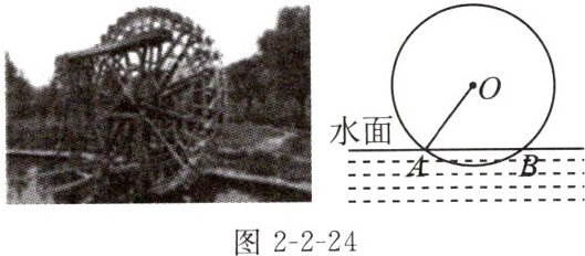 如图2-2-24,“筒车”盛水筒的运行轨迹是以轴心O为圆心的圆,已知圆心O在水面上方,且当圆被水面截得的弦AB长为6m时,水面下盛水筒的最大深度为1m(即水面下方圆上部分一点距离水面的最大距离).