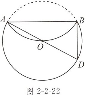 12. (2024常州月考)如图2-2-22,AD是$\odot O$的直径,将$\overset{\frown }{AB}$沿弦AB折叠后,$\overset{\frown }{AB}$刚好经过圆心O.若$BD= 6$,则$\odot O$的半径长是______