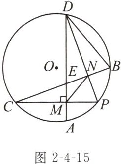 15. 核心素养推理能力如图2-4-15,在$\odot O$中,P为$\overset{\frown }{AB}$的中点,弦AD,PC互相垂直,垂足为M,BC分别与AD,PD相交于点E,N,连接BD,MN。