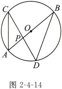 14. 如图2-4-14,在半径为5cm的$\odot O$中,直径AB与弦CD相交于点P,$∠CAB= 50^{\circ }$,$∠APD= 80^{\circ }$。