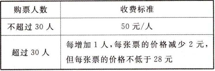 当$x=40$时,每张票的价格为$50-2(40-30)=30>28$,符合题意.