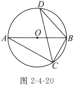 8. 如图2-4-23,AB为$\odot O$的直径,C为$\odot O$上一点,BD平分$∠ABC$,若$∠D= 20^{\circ }$,则$∠ABD$的度数为(