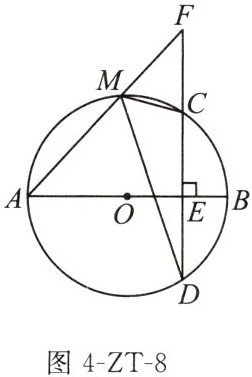 8. 如图4-ZT-8,已知$\odot O$的直径AB⊥弦CD于点E,F为DC延长线上的一点,连接AF交$\odot O$于点M,连接MC,MD.