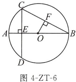 4. 如图4-ZT-4,CD是$\odot O$的弦,直径$AB⊥CD$,垂足为E.若$AB= 12$,$BE= 3$,则四边形ACBD的面积为 (