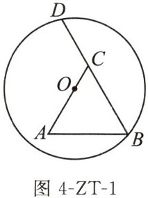 1. 如图4-ZT-1,BD是$\odot O$的弦,点C在BD上,以BC为边作等边三角形ABC,点A在圆内,且AC恰好经过点O,其中$BC= 12$,$OA= 8$,则BD的长为 (