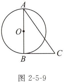 2. 如图2-5-9,AB是$\odot O$的直径,BC是$\odot O$的切线.若$∠BAC= 35^{\circ }$,则$∠ACB$的大小为 (