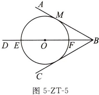 5. 如图5-ZT-5,BD是$∠ABC$的平分线,O是BD上一点,$\odot O$与AB相切于点M,与BD交于点E,F.求证:BC是$\odot O$的切线.